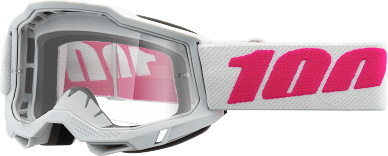 Accuri 2 Goggles - Keetz - Clear Accuri 2 Goggles — Clear Lens Improved fitment and seal with increased field of view Ultra-thick triple layer face foam soaks up sweat Supports triple post tear-offs for secure fitment Slash logo embellishment detail 9-point lens retention system secures lens in frame 45 mm wide silicone coated strap for maximum grip Anti-fog coated polycarbonate lens for clear vision