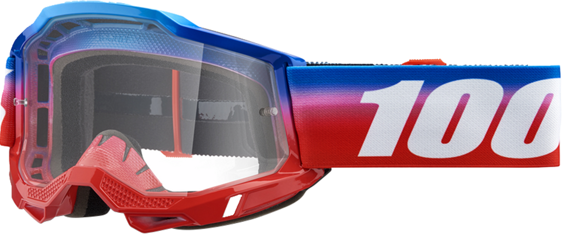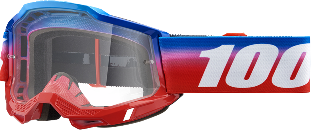 Accuri 2 Goggles - Unity - Clear Accuri 2 Goggles — Clear Lens Improved fitment and seal with increased field of view Ultra-thick triple layer face foam soaks up sweat Supports triple post tear-offs for secure fitment Slash logo embellishment detail 9-point lens retention system secures lens in frame 45 mm wide silicone coated strap for maximum grip Anti-fog coated polycarbonate lens for clear vision