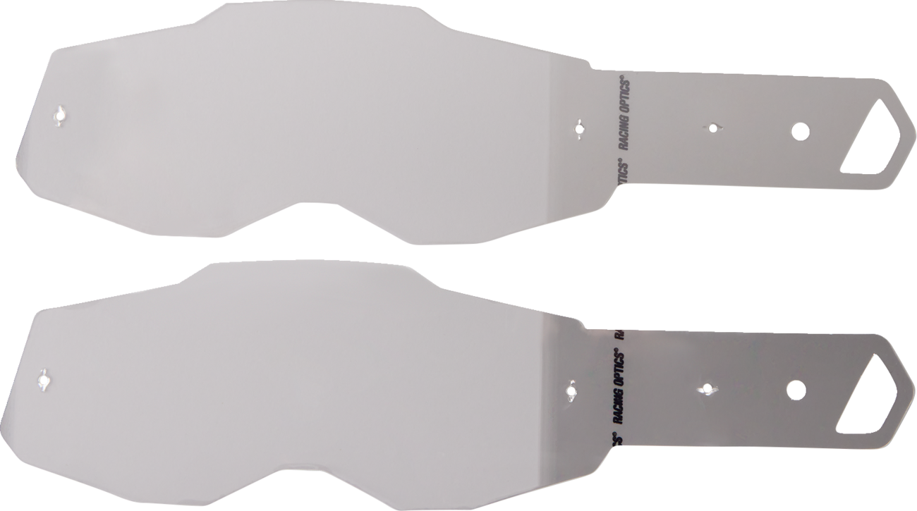 Accuri 2/Racecraft 2/Strata 2 Tear-Offs - Laminated - 7 Pack (2) Accuri 2/Racecraft 2/Strata 2 Goggle Tear-Offs — Laminated Direct replacement tear-offs for 100% Accuri 2, Racecraft 2 and Strata 2 goggles