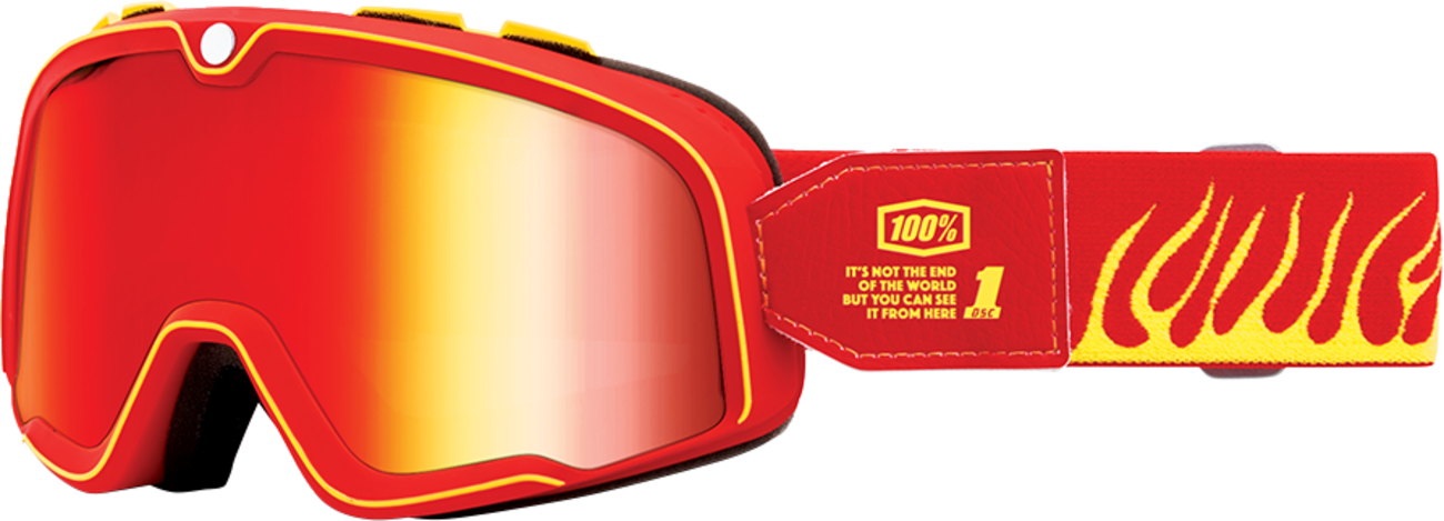 Barstow Goggles - Death Spray - Red Mirror Barstow Goggles Minimal frame design works in union with distinct lens shape to increase visibility Anti-fog polycarbonate lens with integrated pins for seamless tear off application Premium strap trim elevates performance and adds rich detail Triple-layer face foam provides excellent moisture management Upper vents force air in and channel out moisture to reduce fogging