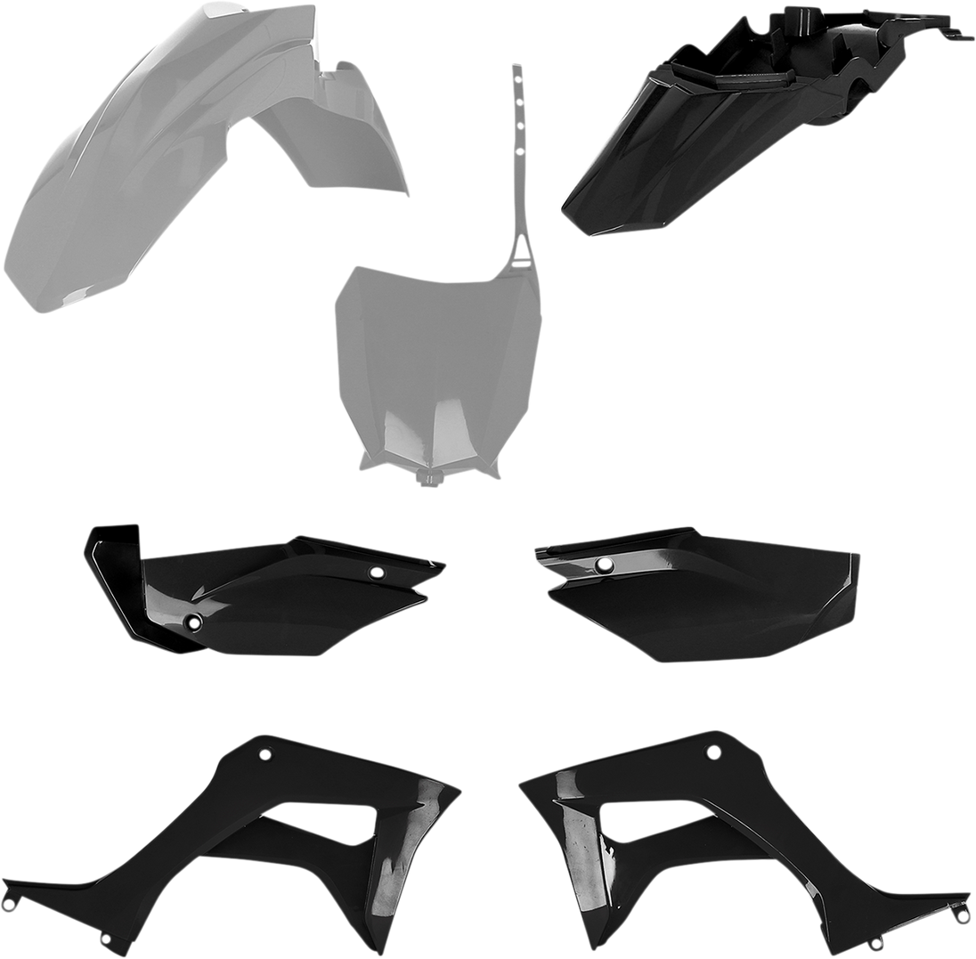 Full kit includes front fender, front number plate, lower fork cover set, radiator shrouds, side panels, and rear fender and airbox covers (unless noted)