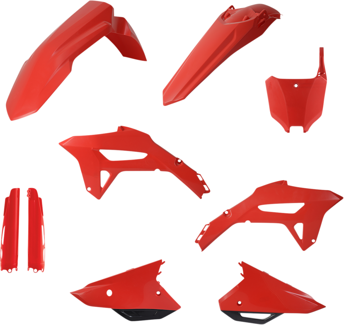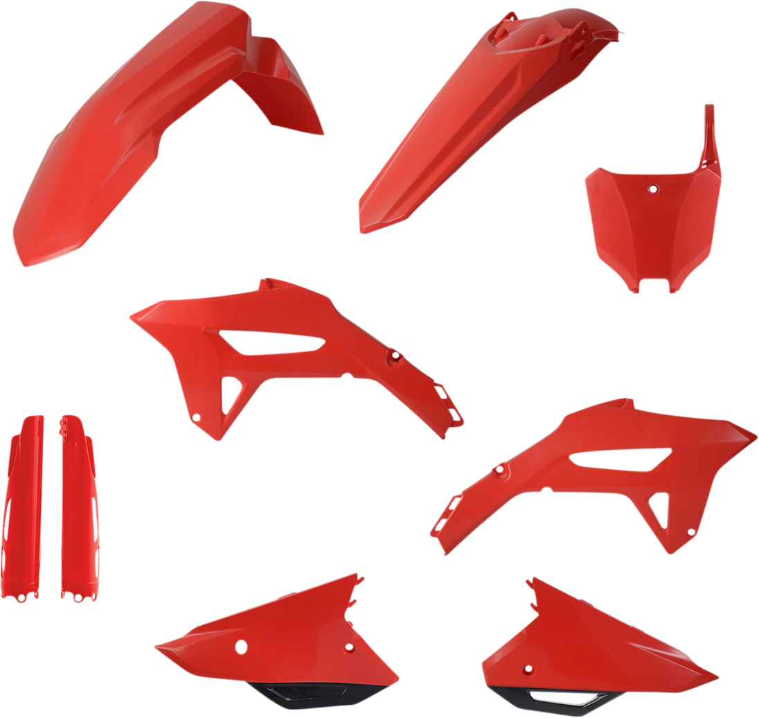 Full kit includes front fender, front number plate, lower fork cover set, radiator shrouds, side panels, and rear fender and airbox covers (unless noted)
