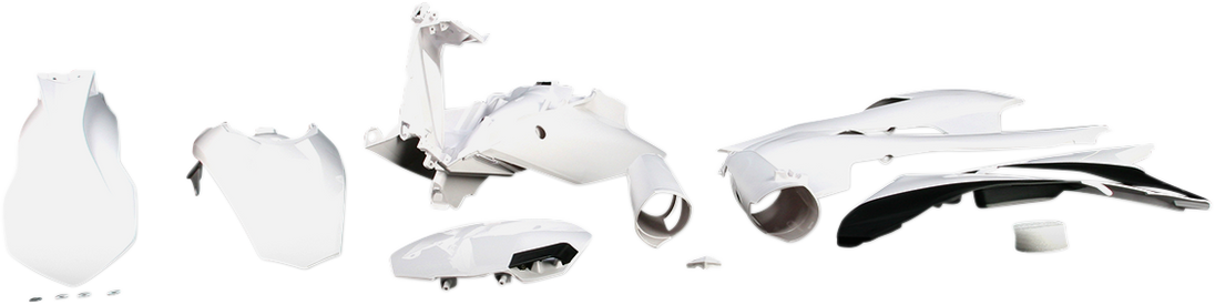Full kit includes front fender, front number plate, lower fork cover set, radiator shrouds, side panels, and rear fender and airbox covers (unless noted)
