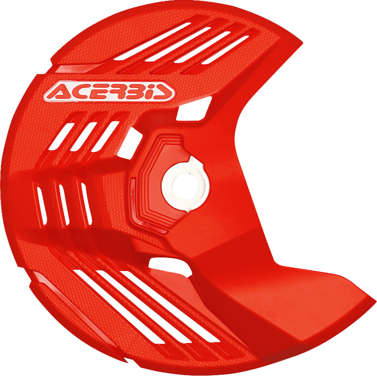 Disc Cover - Linear - Red - Honda | Kawasaki | Sherco | Yamaha Linear Disc Cover Lightweight and resistant Designed to protect the disc and left fork leg from sliding and impact Attachment point uses wheel axle nut and allows for quick application and additional protection of the left fork leg Disc cover is specially designed to be adjustable and allows suspension leg bolts to be tightened and loosened without having to remove it Extension of the disc guard to the caliper protects the caliper assembly from shocks and mud Multiple ventilation windows allow correct temperature self-adjustment and prevents disc/caliper from overheating
