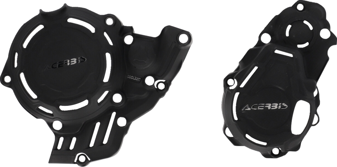 X-Power Kit - Black - Husqvarna/KTM X-Power Kit Motor Crankcase and Ignition/Clutch covers that protect against wear from boots, impacts, dirt, mud, and other debris Right side: provides protection for the clutch cover, water pump, and lower casing Left side: provides protection to the ignition cover and clutch actuator Easy to install by utilizing the original crankcase and ignition/clutch cover bolts Resistant to high temperatures Numerous vents prevent any form of overheating Designed not to interfere with boots when using brake and clutch in any condition Compatible with ACERBIS skid plates
