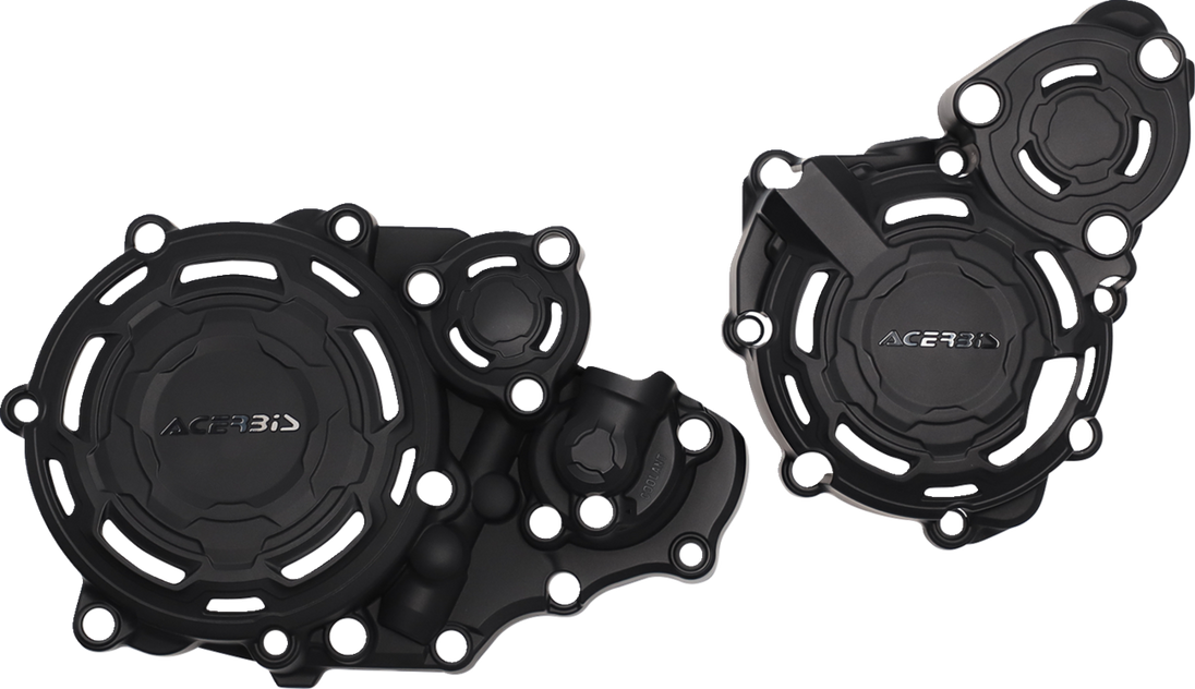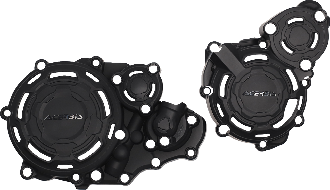 X-Power Kit - Black - Suzuki X-Power Kit Right side: clutch crankcase and water pump protection Left side: ignition crankcase protection Resistant to high temperatures, the numerous air intakes prevent overheating Applies with the original screws adhering perfectly to the clutch/ignition crankcase Mounting kit included Compatible with Acerbis skid plates Engraved logo