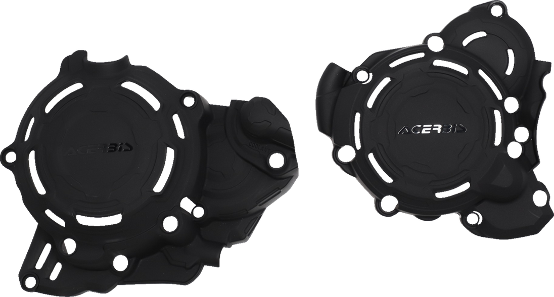 X-Power Kit - Black - Husqvarna/KTM X-Power Kit Protects against wear, shock, abrasion, mud sand and debris Right side: clutch cover protection, water pump and lower crankcase Left side: ignition cover protection and ignition cable Resistant to high temperatures, numerous vents prevent overheating Attaches with the original screws adhering perfectly to the clutch/ignition cover Mounting kit included Compatible with Acerbis sub-engine covers Engraved logo