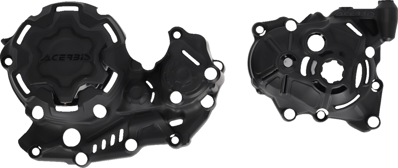 X-Power Kit - Black - Yamaha YZ450F X-Power Kit Ignition crankcase and clutch crankcase protection kit Protects against wear, impact, abrasion, mud, sand and debris Right side: clutch crankcase protection, water pump and lower crankcase Left side: ignition crankcase protection Resistant to high temperatures, numerous air vents prevent overheating Applies with the original screws adhering perfectly to the clutch crankcase/ignition crankcase Mounting kit included Compatible with Acerbis skid plates Engraved logo