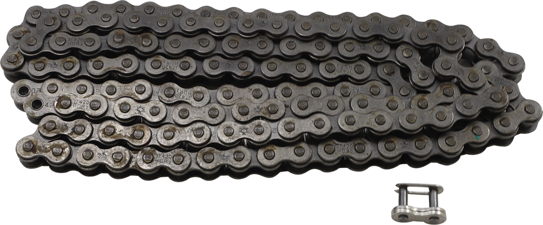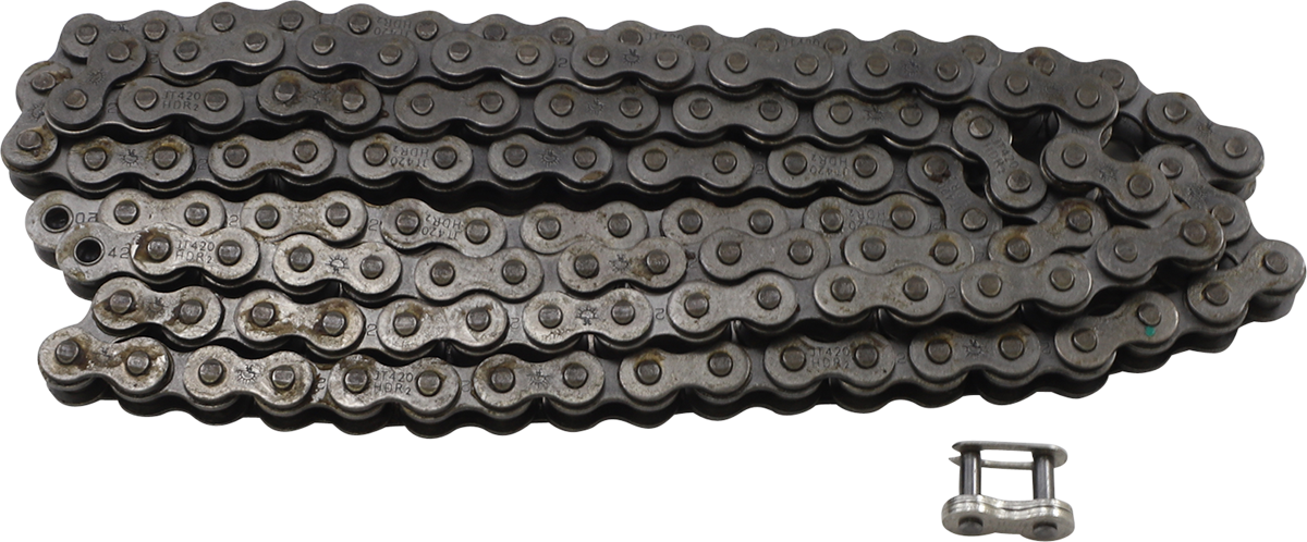 420 HDR - Heavy Duty Drive Chain - Steel - 130 Links 420 HDR Heavy Duty Drive Chain JT Chains produces a full range of superior quality motorcycle chains using leading-edge technology and only the highest grade of special steel alloys Specifications of the JT advanced power transfer chains meet or exceed the requirements of all modern motorcycles, street, MX, enduro, offroad and ATV A full range of chain types, from 50cc mopeds to 200+ bhp superbikes, in steel or gold finish Leading edge technology in materials and production ensures top class performance, strength and durability Specially engineered to favorably compare with all types and brands of motorcycle chain on the market