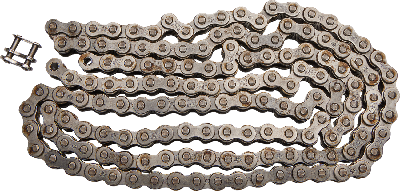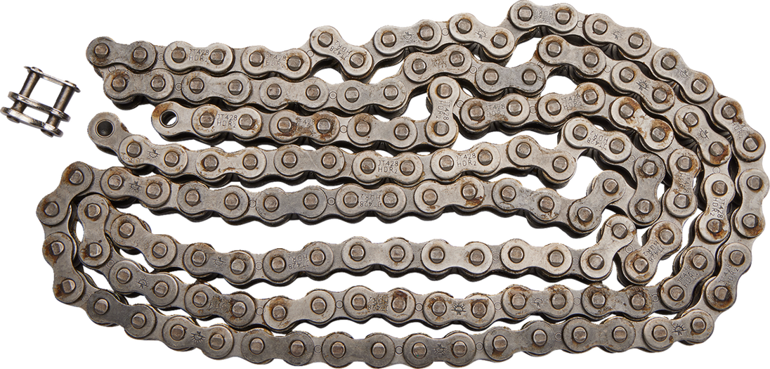 428 HDR - Heavy Duty Drive Chain - Steel - 146 Links 428 HDR Heavy Duty Drive Chain JT Chains produces a full range of superior quality motorcycle chains using leading-edge technology and only the highest grade of special steel alloys Specifications of the JT advanced power transfer chains meet or exceed the requirements of all modern motorcycles, street, MX, enduro, offroad and ATV A full range of chain types, from 50cc mopeds to 200+ bhp superbikes, in steel or gold finish Leading edge technology in materials and production ensures top class performance, strength and durability Specially engineered to favorably compare with all types and brands of motorcycle chain on the market