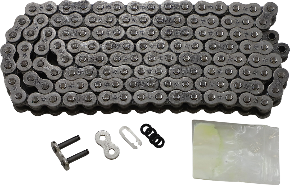 428 X1R - Heavy-Duty - X-Ring Sealed Drive Chain - Steel - 124 Links 428 X1R Heavy-Duty X-Ring Sealed Drive Chain Special Instructions: ACTUALLY 124 LINKS 02JBC ACTUALLY 124 LINKS €ƒœ02JBC JT Chains produces a full range of superior quality motorcycle chains using leading-edge technology and only the highest grade special steel alloys