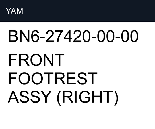 YAM FRONT FOOTREST ASSY (RIGHT) BN6-27420-00-00