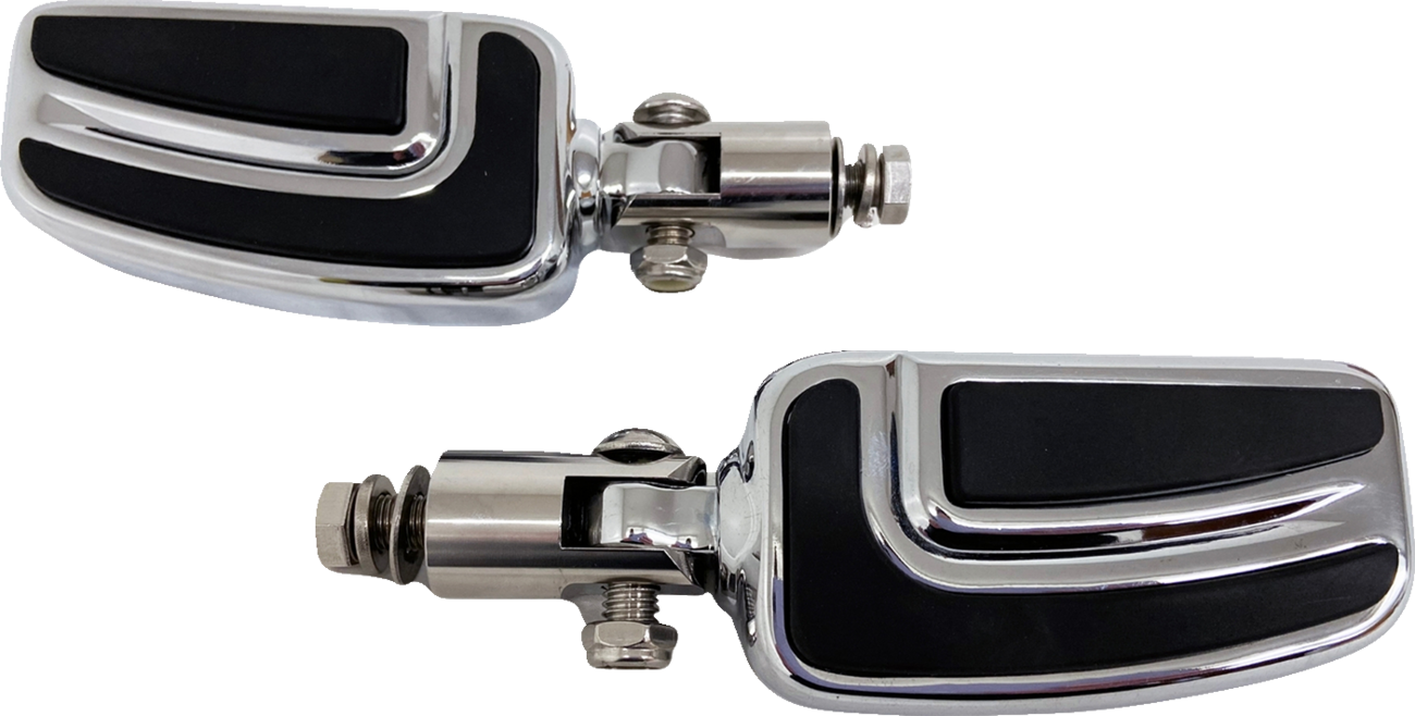 Custom Pegs - Chrome Custom Accent Peg Feature anti-vibration rubber inlays Folding clevis mount Stainless steel 3/8” bolts will fit most arms and clamps Sold in pairs
