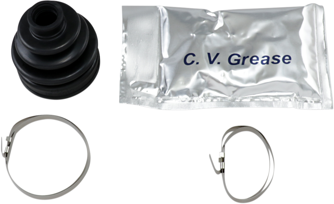 CV Boot Kit - Front Inner/Outer CV Boot Kit 40% higher tensile strength and 50% more abrasion resistant than conventional material, suitable for the high joint angles and demands of today's ATVs and UTVs Kits include two stainless steel clamps that are designed to be tightened without the use of special tools Lithium-based molybdenum grease ensures good lubrication for long CV joint life Fitment: