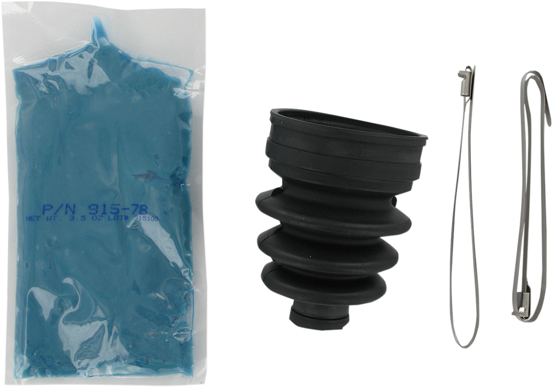 CV Boot Kit - Front/Rear Inboard CV Boot Kit Standard — CV Boot Includes (MOs2) Molybdenum disulfide grease packs for longer life under high stress loads that are seen in CV Joint and axle applications Super Tough Polychloroprene material withstands heat, cold and abuse Includes 1 cv boot, clamps and grease Fitment: