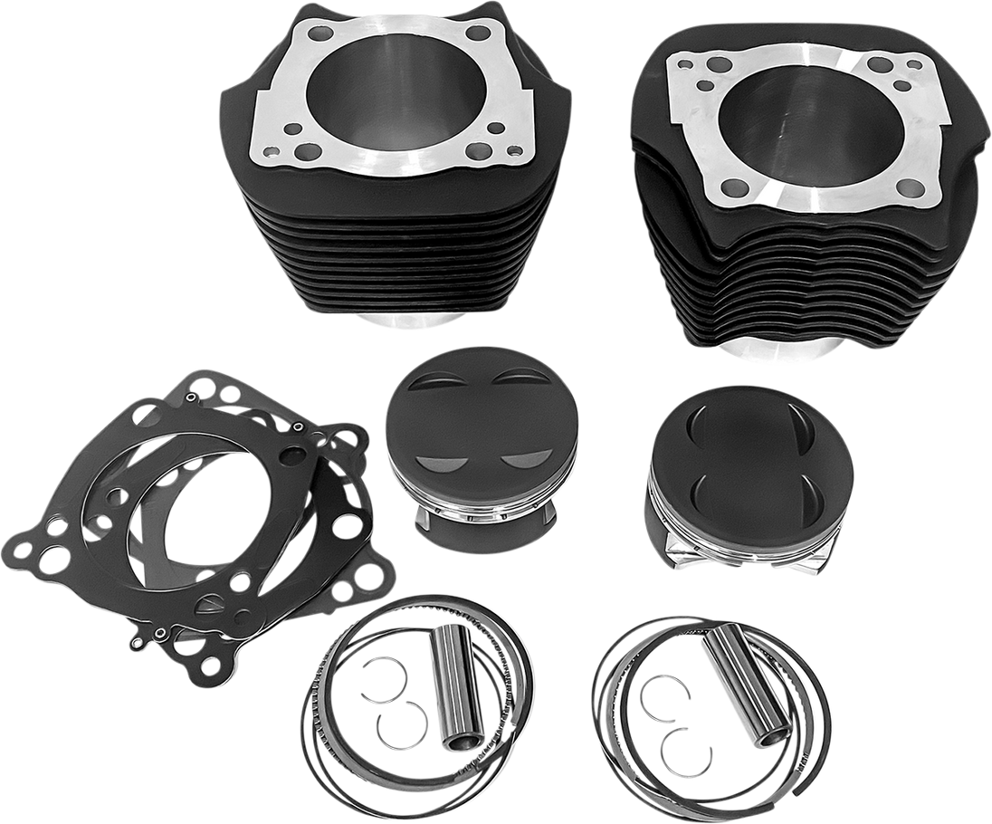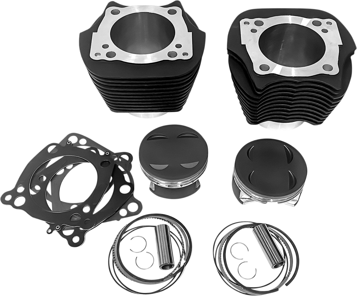 Cylinder Kit - 139" - Black - M8 Cylinder Kit Special Instructions: F/107";4.5BORE,4.375STROK25PJL F/107";4.5BORE,4.375STROK€‚25PJL Aerospace-grade all-aluminum cylinder with nickel-silicon-carbide (NSC) electroplated bore No sleeving allows for larger bore sizes NSC-plated cylinders have less friction for increased horsepower, lower engine temperatures and a longer lifespan Monster big bore kits will require case boring Includes pair of all-aluminum NSC-coated bore cylinders, custom-forged pistons with high-tension rings specifically designed for NSC cylinders and a head/base gasket set Replacement gasket sets available separately Upgraded cylinders studs and head bolts recommended Made in the USA Fitment: