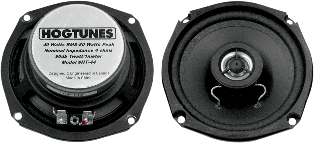 4.25" Speakers - '86-'96 Dressers Replacement Speakers for '85-'96 Dressers Direct replacement speakers for 86-96 model bikes equipped with factory radios Fit behind factory grilles, includes 10mm soft rubber gaskets for an improved fit 4.25" speakers, 4 ohm, 2-way design Feature Hogtunes "signature" sound to enhance sound on a bike at speed Install using factory hardware Can be used on bikes with a car radio conversion kit
