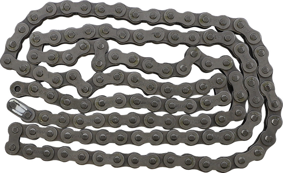 428 - Standard Non-Sealed Chain - 124 Links Standard Non-Sealed Chain Super economical roller chain Standard chains have two-point pin riveting Special steel alloy, solid roller and pre-stretched, shot-peened parts Comes with clip-type master link