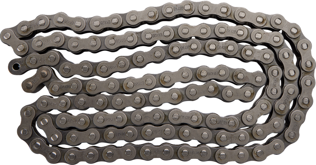 428 - Standard Non-Sealed Chain - 126 Links Standard Non-Sealed Chain Super economical roller chain Standard chains have two-point pin riveting Special steel alloy, solid roller and pre-stretched, shot-peened parts Comes with clip-type master link