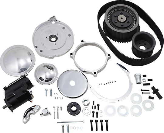 3" Belt Drive Kit 3" Shorty Belt Drive Kit Designed for electric start applications Kit includes 141-tooth drive belt, motor plate, clutch hub, starter pinion gear assembly, compete set of clutch plates, ball-bearing pressure plate and...Regular price $1,851.95 -