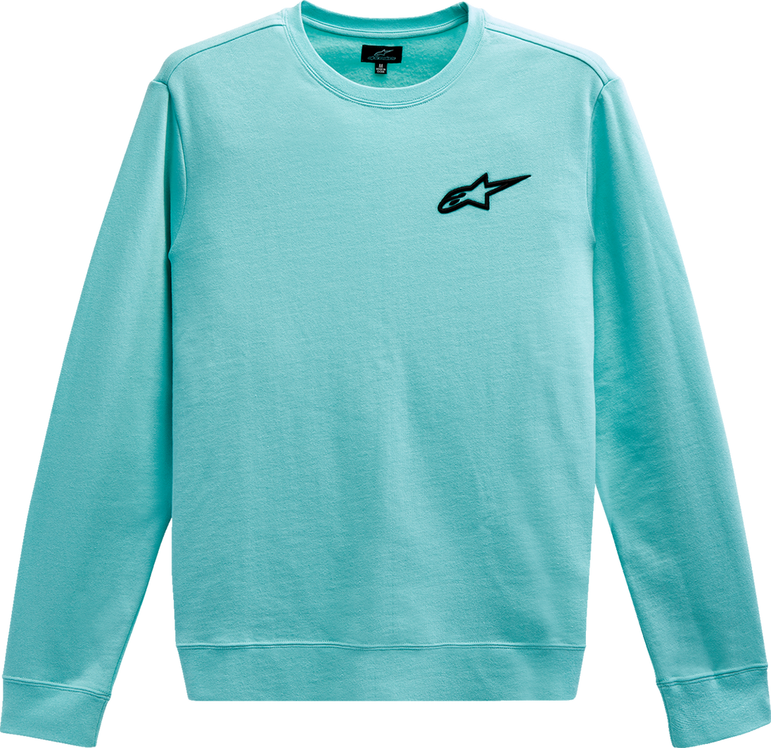 Ageless Crew Fleece - Aqua - XL Ageless Crew Fleece Front Alpinestars embroidered chest logo Ribbed cuffs and hem Internal main label and external label branding Content: 80% Cotton / 20% Polyester