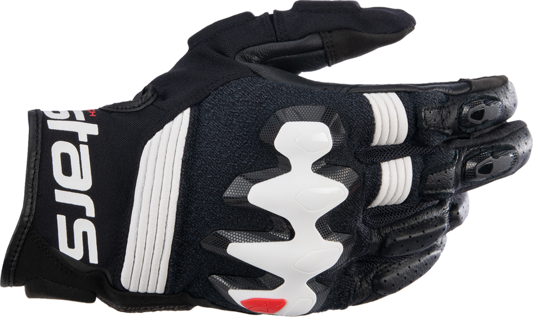 Halo Gloves - Black/White - Small Halo Leather Gloves Premium goat leather and advanced stretch textile main chassis for high levels of abrasion resistance and comfort Technical construction optimized for protection when riding off-road Stretch backhand constructed with polyamide and reinforced with aramid delivers the perfect blend of flexibility, comfort and durability Seamless knuckle protector offers effective protection against impacts Extensive perforated panel on fingers for optimal airflow Stretch fabric on the back hand for enhanced freedom of movement Over-injected, ergonomically profiled knuckle protector delivers protection against impacts; seamless construction delivers enhanced rider comfort ARshield landing pad for additional protection Over-injected finger sliders for abrasion resistance Rubber grip pad for enhanced feel with the bike's controls Short cuff design with flat wrist closure for a thin, streamlined profile Touchscreen compatible index and thumb for use with smart devices