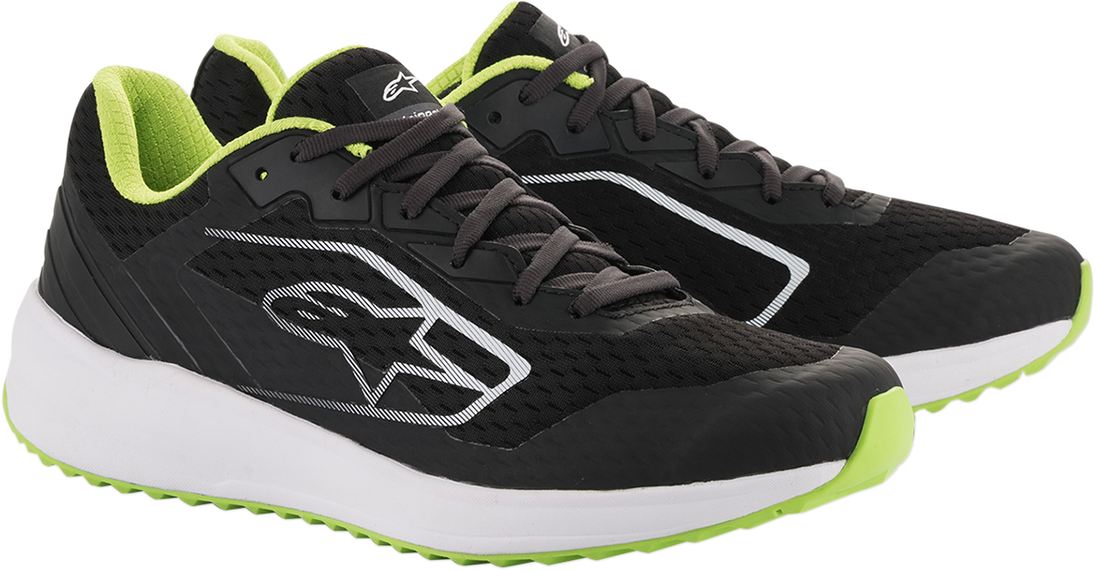 Meta Shoes - Black/White/Green - US 9 Meta Road Shoes Designed for mechanics and teams looking for good all-day comfort and occasional road running Easy to slip on design with large toebox that allows the toes to spread when kneeling for greater levels of comfort EVA insert located in main midsole beneath the heel provides long lasting softness Midsole wall wrapping snugly secures the foot and provides good stability and comfort Oil resistant rubber sole improves grip on dirty surfaces Removable inner sock with open cell PU compound provides high breathability, which reduces overheating, offers high durability and superb overall comfort Lightweight minimal construction with 360° tongue configuration ensures a ‘glove’ like fit Dual density PU foam is anatomically positioned to hold the ankle securely in place