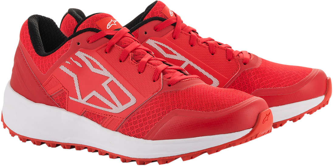 Meta Trail Shoes - Red/White - US 10.5 Meta Trail Shoes Designed for mechanics and teams looking for good all-day comfort and occasional road running Easy to slip on design with large toebox that allows the toes to spread when kneeling for greater levels of comfort EVA insert located in main midsole beneath the heel provides long lasting softness Midsole wall wrapping snugly secures the foot and provides good stability and comfort Oil resistant rubber sole improves grip on dirty surfaces Removable inner sock with open cell PU compound provides high breathability, which reduces overheating, offers high durability and superb overall comfort Lightweight minimal construction with 360° tongue configuration ensures a ‘glove’ like fit Dual density PU foam is anatomically positioned to hold the ankle securely in place