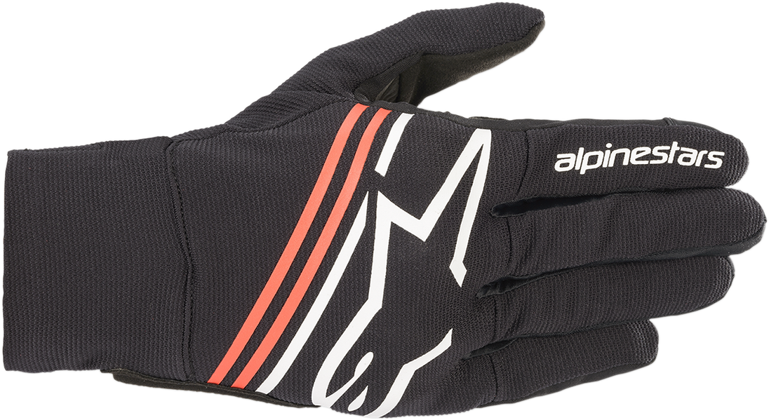 Reef Gloves - Black/White/Fluo Red - XL Reef Gloves Stretch fabric construction for low weight and high levels of breathability Synthetic suede palm for enhanced abrasion resistance Stretch fourchette for optimized flexibility and breathability Rubber grip zone for excellent levels of grip and additional protection against abrasion and cuts PVC covered hard knuckle for enhanced protection against impacts Webbing wrist strap for a safe and secure closure Ergonomic thumb for optimized freedom of movement and flexibility Ergonomic stretch insert for enhanced stretch in the palm and additional comfort Multi-media compatible index finger Slim wrist construction ensures the glove sits better within the sleeves of a jacket Maze pattern heat stamp on palm for enhanced protection against abrasion and cuts Stretch mesh construction on full back hand for breathability