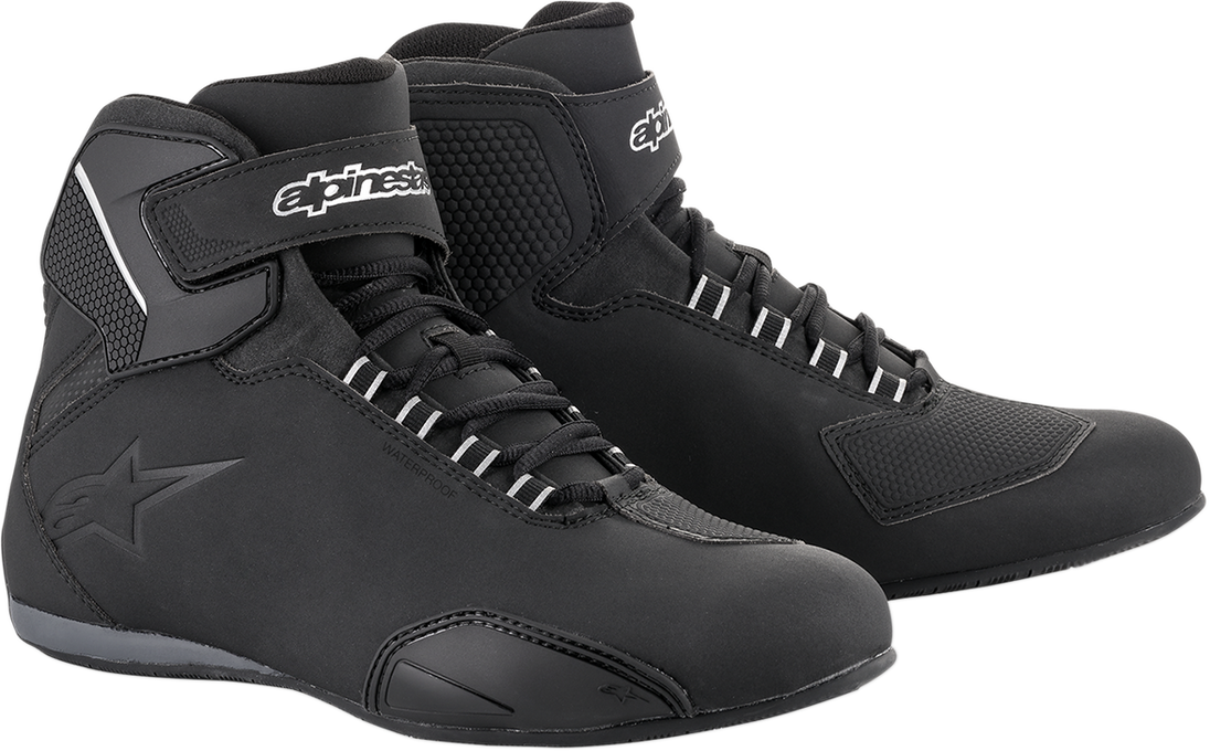 Sektor Waterproof Shoes - US 13.5 Sektor Waterproof Shoes The upper is constructed from a superbly lightweight, durable and abrasion resistance microfiber Waterproof membrane lining for proven performance in difficult weather conditions Medial ankle protection for improved fit and a lighter weight Original speed lace system derived from Auto racing shoes for a personalized fit and feel Lateral ankle strap provides secure closure and fits within the upper ankle polymer protection panel to ensure a flush finish TPR lateral ankle protector and slider for more protection and high abrasion resistance Flex areas on the heel and instep for an enhanced comfort while walking Small reflex detailing on heel and eyelet area makes the rider more visible to other road users Internal protective toe-box and heel counter are positioned under the microfiber outer chassis Extremely lightweight, specifically compounded, rubber sole provides textured grip, excellent absorption and features an integrated support shank for enhanced sole rigidity Replaceable anatomical EVA footbed with mesh lining on top