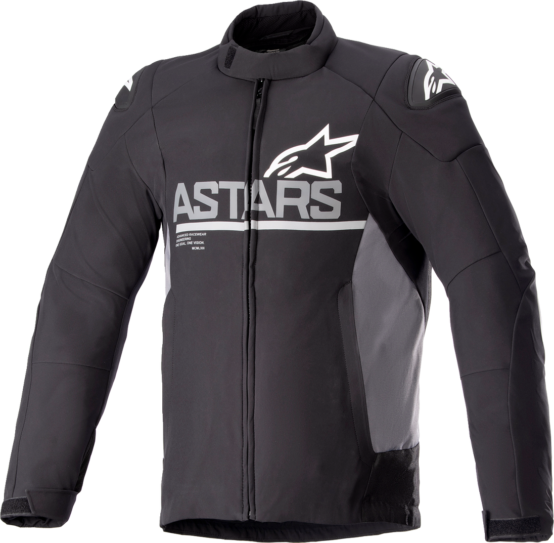 SMX Waterproof Jacket - Black/Gray - Medium SMX Waterproof Jacket DWR (Durable Water Repellent) treatment on the fixed waterproof membrane for additional wet weather performance Strategically positioned stretch panel inserts have been designed to accommodate Alpinestars Airbag System, allowing expansion when the airbag inflates but also offering a high level of anatomical performance and a superior fit when riding without the system fitted Tech-Air® 5 ready; Tech-Air® is the world’s first completely electronic, self-contained, full independent upper body motorcycle airbag system with no bike-to-rider set-up configurations required An engineered sports body mapped fit and precurved sleeves for optimal riding performance Detachable thermal liner (100g body, 80g sleeves) allow the jacket to be configured according to the climate Nucleon Flex Plus armor on shoulder and elbow (Nucleon chest Level 1 and Nucleon Level 1 and 2 back protectors available as an accessory upgrade) DFS Lite shoulders with dynamic friction shield on the shoulder for enhanced abrasion resistance Rear of the jacket is elongated for enhanced coverage when riding Shock cord waist for a secure closure Two front zippered pockets, two chest pockets an inner waterproof document pocket and two inner pockets on the liner for safe and secure storage of valuables Zip front closure has been engineered to be durable and easy to use Chassis constructed from a blend of poly-fabric and stretch softshell for comfort, durability and light weight, with a 2L waterproof membrane for proven wet weather performance Low profile sports collar construction with soft lining for enhanced rider comfort
