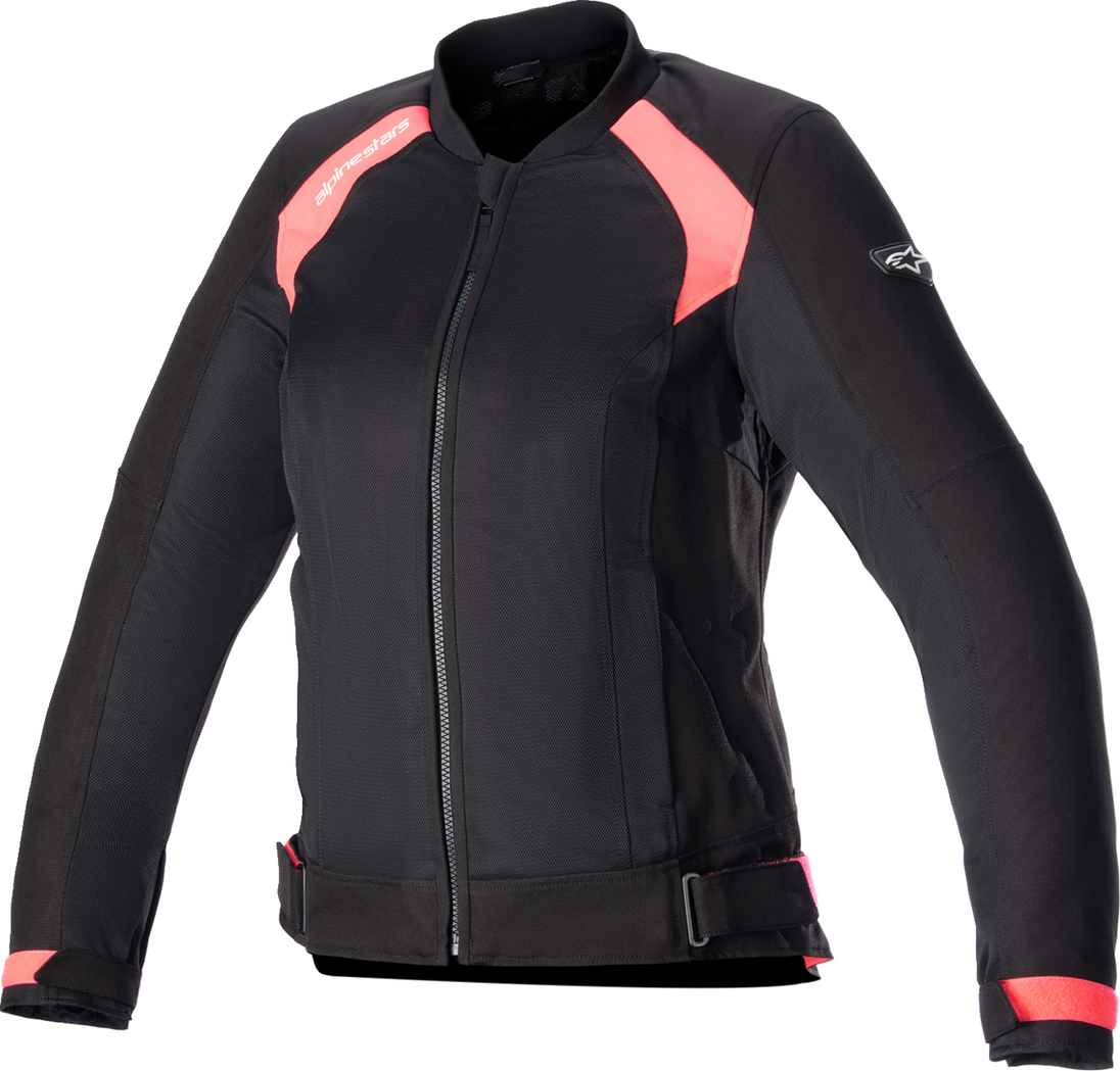Stella Eloise Jacket - Black/Pink - Small Stella Eloise Jacket This jacket is Tech-Air® ready and can accommodate the Tech-Air® 5 Airbag System, for complete upper body protection Anatomically engineered for an optimized women’s ergonomic fit Extensive perforations for optimized airflow and breathability Protective and comfortable Nucleon Flex Plus armor is highly flexible and adaptive and has a thin profile for optimum rider comfort Extensive, high abrasion-resistant mesh inserts strategically positioned for optimized cooling Constructed from an advanced 600D poly-fabric for durability and abrasion resistance Lightweight, elbow and shoulder protectors grant the jacket a sleek fit yet provide class leading impact protection Back compartment can accommodate the Nucleon back protector (available as an optional upgrade) External zippered pockets for safe and convenient storage Hook and loop system on waist and cuff, and button forearm adjusters for an optimized fit Pre-curved sleeve construction for reduced fatigue and enhanced riding comfort Elongated rear profile covers lumbar area and offers coverage in upright riding position Subtle reflective detail on back Stretch panels on scapulae area and arm entry for enhanced rider comfort