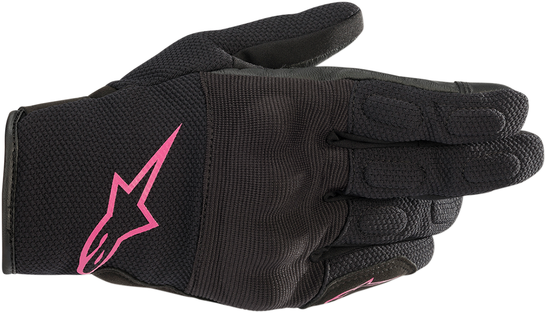 Stella S-Max Drystar® Gloves - Black/Fuchsia - Medium Stella S-Max Drystar® Gloves Anatomically profiled for an optimized female fit Short sport glove constructed from a mixture of leather and stretch mesh for high levels of durability Ergonomic stretch insert on palm for added rider comfort Drystar® waterproof and breathable technology offers effective all-weather protection against the elements Palm reinforcement for superior grip Covered hard knuckle with padded finger for enhanced levels of impact protection Side reinforcements for added protection