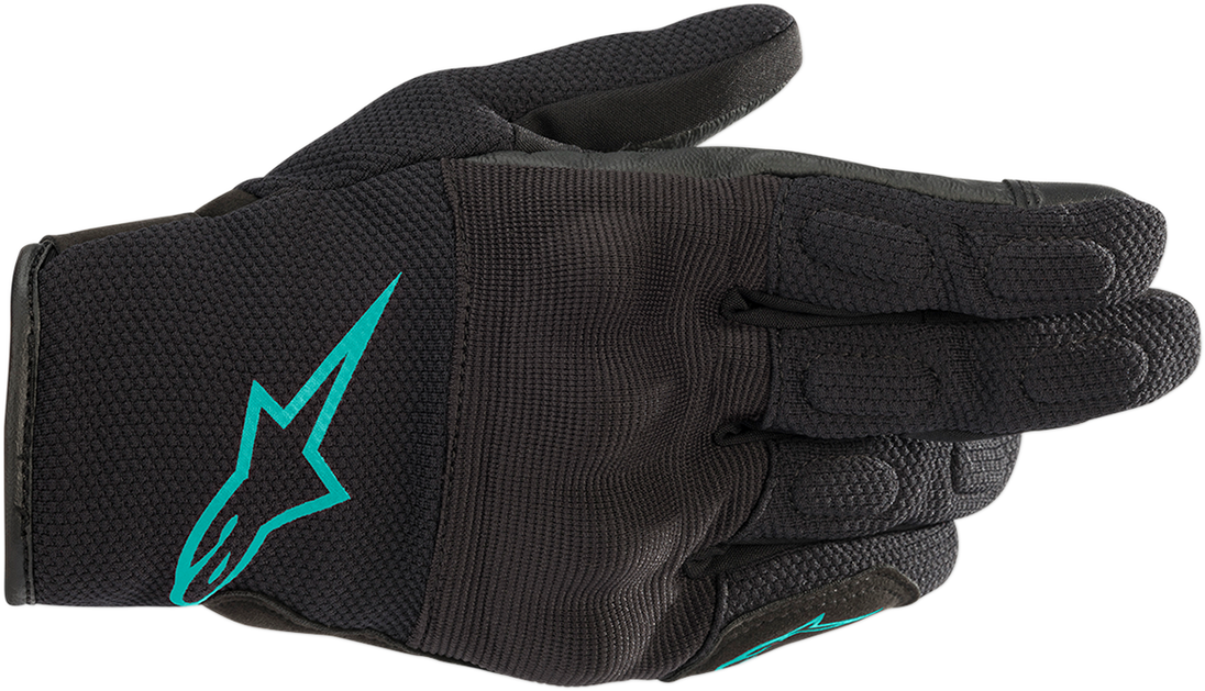 Stella S-Max Drystar® Gloves - Black/Teal - Large Stella S-Max Drystar® Gloves Anatomically profiled for an optimized female fit Short sport glove constructed from a mixture of leather and stretch mesh for high levels of durability Ergonomic stretch insert on palm for added rider comfort Drystar® waterproof and breathable technology offers effective all-weather protection against the elements Palm reinforcement for superior grip Covered hard knuckle with padded finger for enhanced levels of impact protection Side reinforcements for added protection