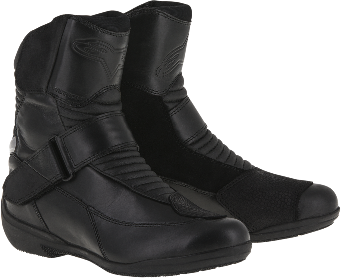 Stella Valencia Waterproof Boots - Black - US 11 / EU 43 Stella Valencia Waterproof Boots Upper constructed from suede and full grain leather for performance and durability Inner waterproof membrane Dual-density ankle discs provide strategic protection Lateral hook-and-loop strap closure Front and rear microfiber accordion flex zones for comfort Nubuck leather shift pad for flexibility Lightweight sole with steel shank for support Removable anatomic footbed includes Ethylene-Vinyl Acetate (EVA) foam and stretch fabric for comfort and support