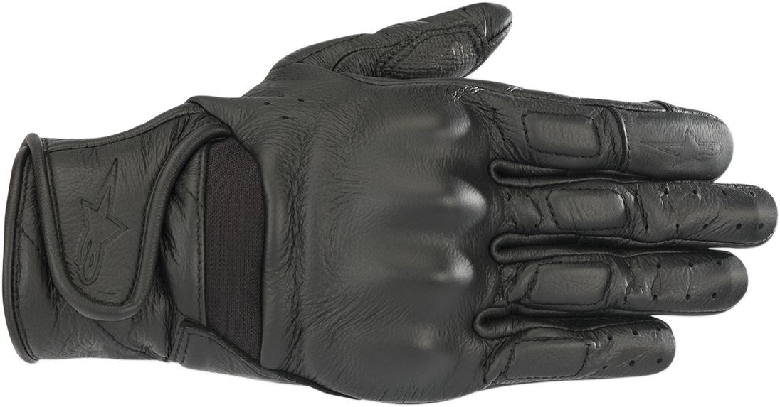 Stella Vika V2 Gloves - Black - Medium Stella Vika V2 Gloves Designed to offer an optimized women’s fit Premium full-grain leather construction gives strength, durability and flexibility Palm padding and leather patch Subtly styled viscoelastic knuckle is covered with leather Stretch insert on backhand for improved flexibility Discreetly incorporated advanced thermo-formed foam padding on palm, fingers and thumb for fit Localized perforation on fingers, thumb and palm for better breathability Short cuff with top-hand cuff closure for convenience Extended ergonomic stretch insert on palm for flexibility Thumb and palm reinforcement for durability Designed to accompany products in the Alpinestars VIKA fashion design collection Touchscreen conductive finger tips