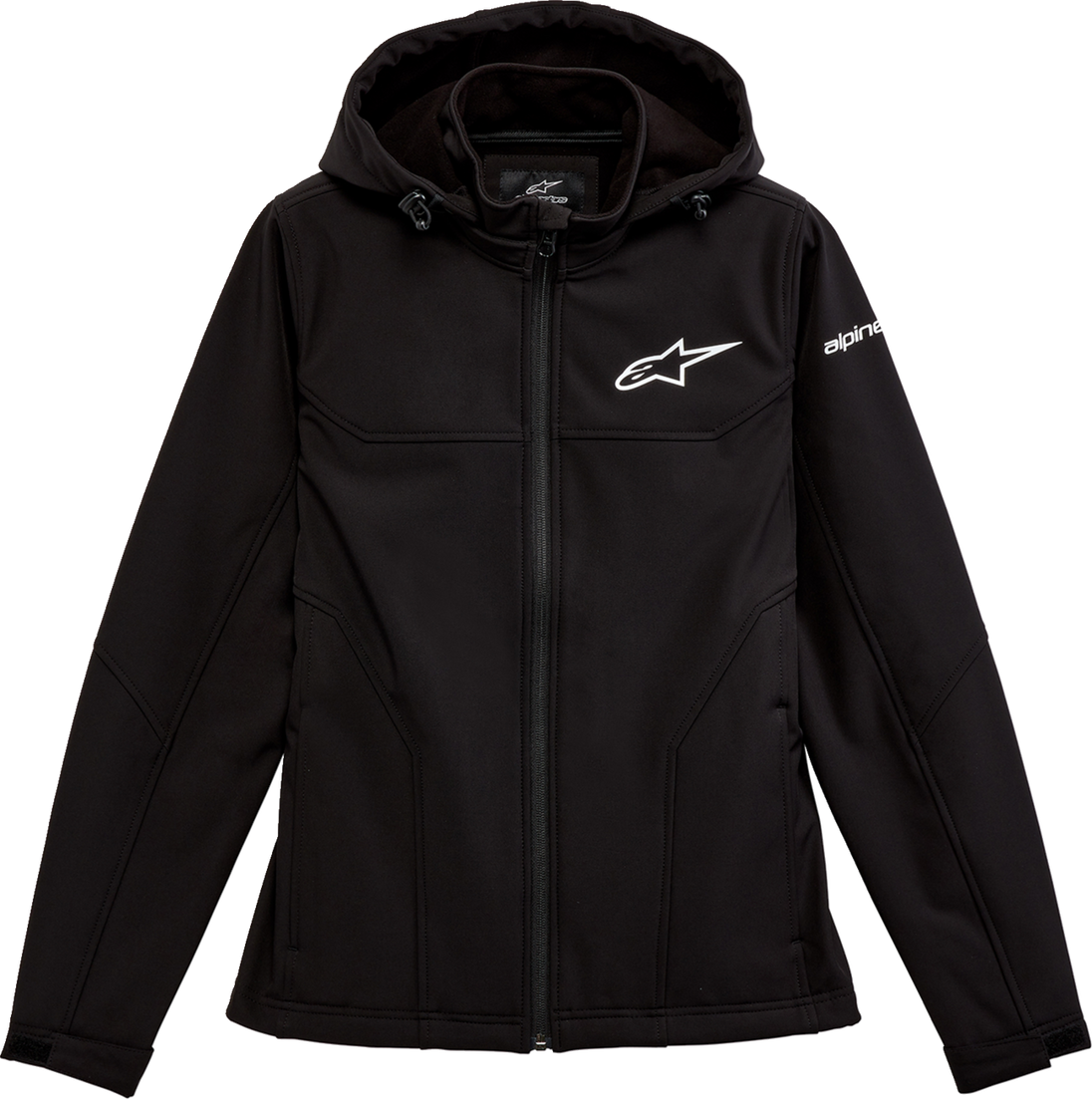Women's Primary Jacket - Black - Medium Women's Primary Jacket 92% Polyester/8% Spandex Woven fabric waterproof 5K w/ fleece clean TPU w/DWR finish Soft surface wind stopper softshell jacket with moto styling Removable hood with bungie adjusters On seam hand pockets, velcro tab cuffs and bungie adjust hem Internal main label and external label branding HD logos at chest and left sleeve