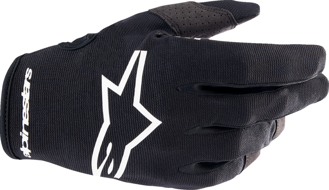 Youth Radar Gloves - Black - XS Youth Radar Gloves Lightweight glove incorporates a single-piece spandex upper and synthetic suede palm reinforcements for comfort and improved feeling on a bike's controls Rolling backhand and index finger for additional protection in a key area Localized palm perforations palm for enhanced breathability Synthetic suede palm for durability Thumb patch reinforcement for durability Puller for easy entry into glove Stretch fourchettes for increased flexibility Sublimated graphic on backhand