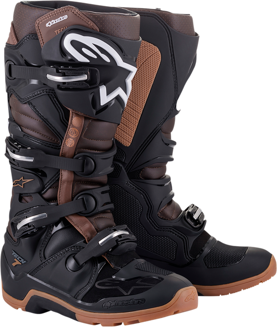 Tech 7 Boots - Black/Brown - US 13 Tech 7 Boots Upper is constructed from a light microfiber that provides flexibility and abrasion resistance Thermoplastic Polyurethane (TPU) shin-plate construction and a reinforced hook-and-loop closure offers a...Regular price $459.95 -