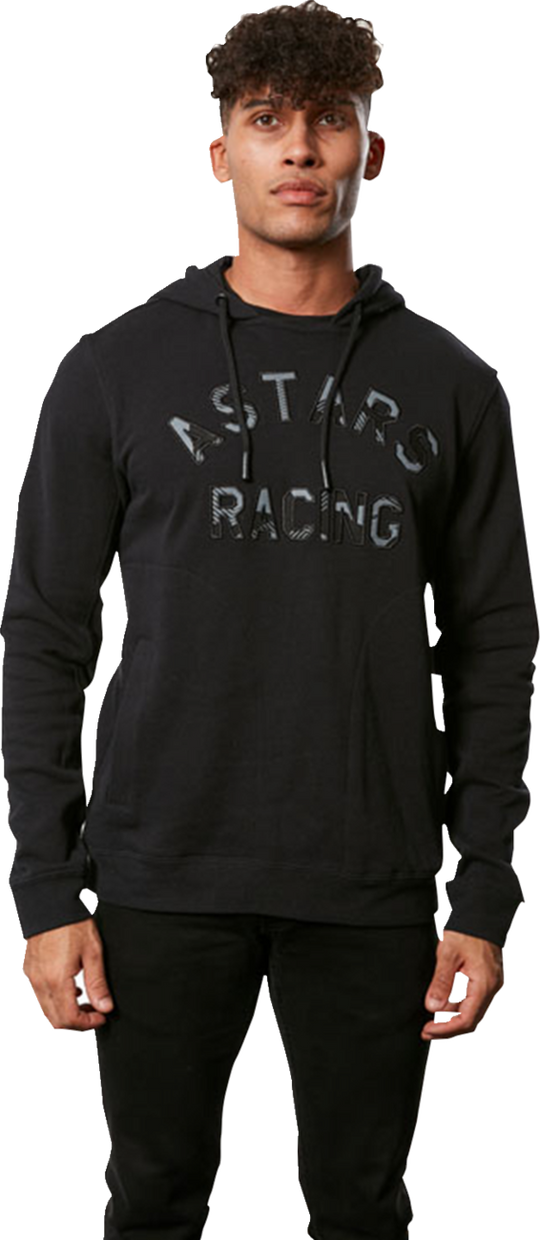 Assured Hoodie - Black - Medium Assured Hoodie Pullover body with crew neck collar set in hood Astars Racing camo applique on front Welt pockets, jersey hood lining dipped drawcord tips, rib cuffs and hem Logo...Regular price $84.95 -
