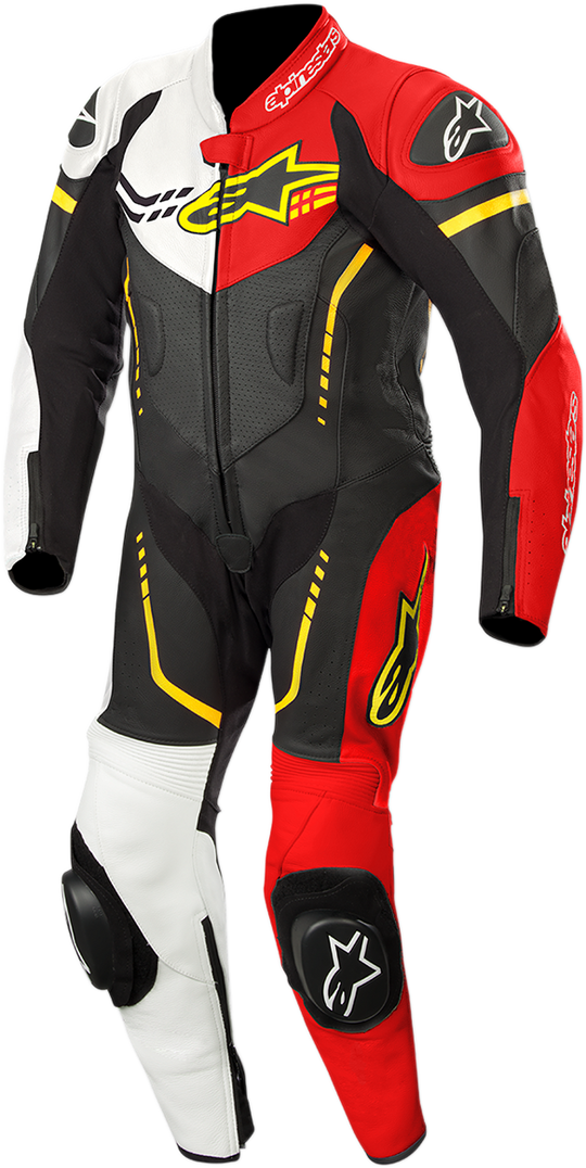 Youth GP Plus 1-Piece Leather Suit - Black/White/Red Fluorescent/Yellow Fluorescent - US 28 / EU 150 (Each)-28011223