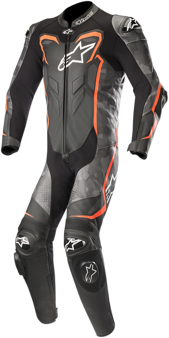 GP Plus v2 Camo 1-Piece Leather Suit - Black/Charcoal/Red Fluorescent - US 42 / EU 52 (Each)-28011246