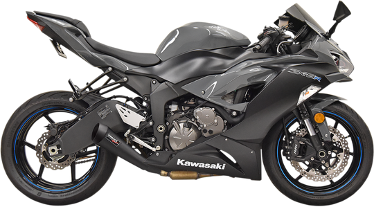 ZX-6R Slip-On - Black Megaphone Slip-On Muffler Hand TIG Welding Removable Slash Cut Billet End Cap Removable baffle Aggressive exhaust note Made in the U.S.A. Includes 18 mm O2 sensor ports and 12 mm adapters This...Regular price $439.95 -