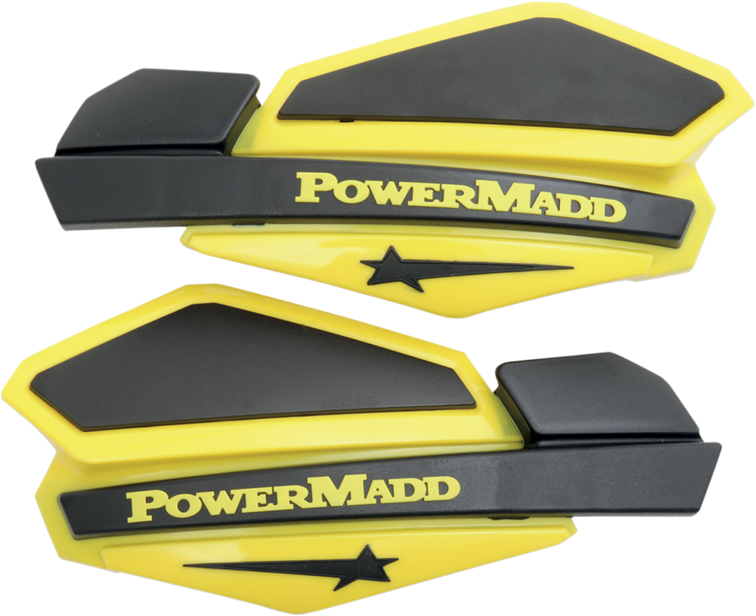 Handguards - Suzuki Yellow/Black Star Series Handguards Engineered to provide the ultimate in hand protection against the elements Allow the rider to wear thinner gloves for more control while still keeping hands warm Fully adjustable mounting system allows for a variety of positions to fit the rider's needs A great way to add that racer look while providing excellent wind protection Provide coverage against roost and flying debris Universal mounting system for simple installation Handguards and mounting system are sold separately
