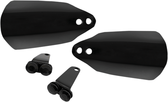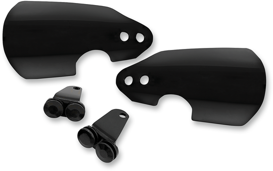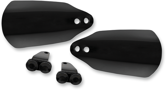 Handguards - Black Handguards Stylish wind protection for your hands Mounts are E-coated aluminum, guards are rubber isolated Made of aircraft-grade Lucite Includes matching hardware Made in the U.S.A. Fitment: Vehicle Type Model Years American VTwin...Regular price $89.95 -