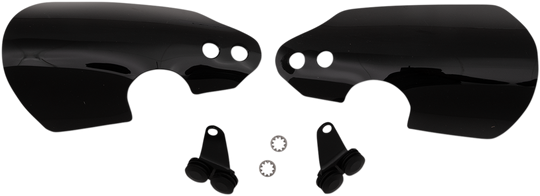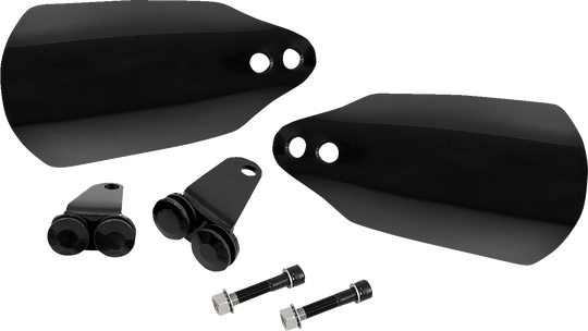 Handguards - Black Handguards Stylish wind protection for your hands Mounts are E-coated aluminum, guards are rubber isolated Made of aircraft-grade Lucite Includes matching hardware Made in the U.S.A. Fitment: Vehicle Type Model Years American VTwin...Regular price $89.95 -
