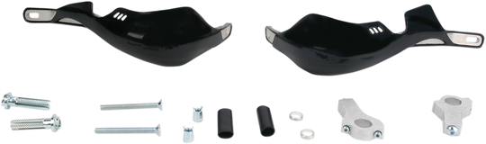 Handguards - Black Pro-Guard Reinforced Handguards Fit steel or aluminum 7/8" handlebars Aluminum brackets and frame for strong protection Indexed steel bar-end insert mounts solidly and will not allow guard to rotate in a crash Come...Regular price $64.95 -