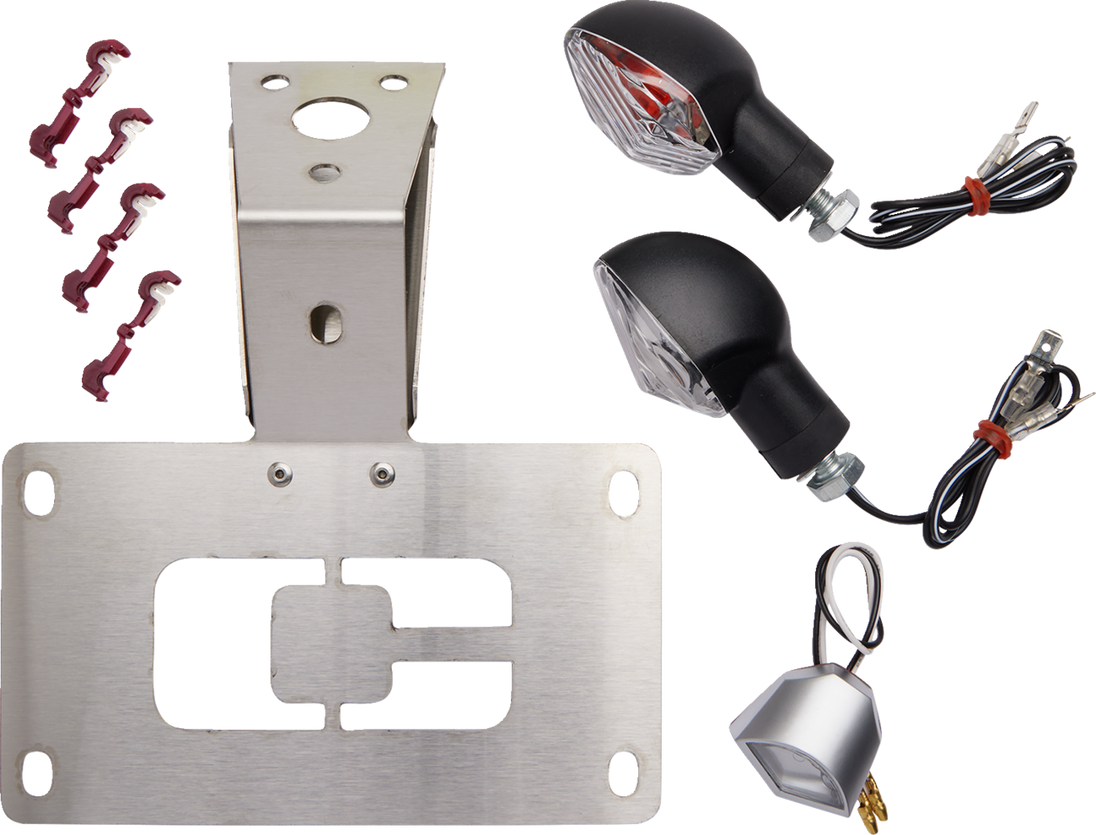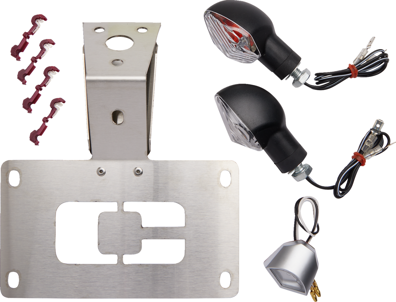 Fender Eliminator Kit - R1 Fender Eliminator Kit with Turn Signals Eliminate the rear fender to give your bike a cleaner race-style look Made from CNC laser-cut 304 stainless steel Flush-mount rear LED turn signals and LED license plate light included Hardware and instructions for easy installation Made in the U.S.A. Fitment: