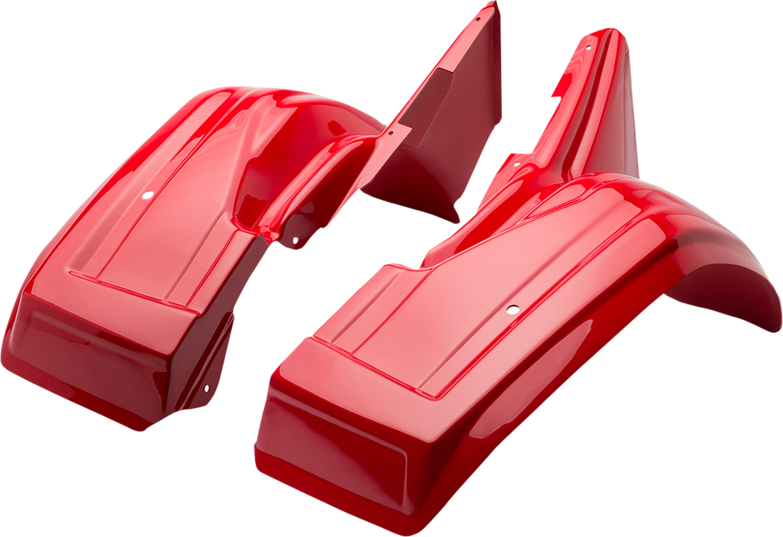 Rear Fender - Red Fender Replacement Plastic Maier bodywork is made of tough, vacuum-formed, high-density polyethylene Uses stock hardware or provided hardware Drilling may be required in some applications Colors are OEM color matched