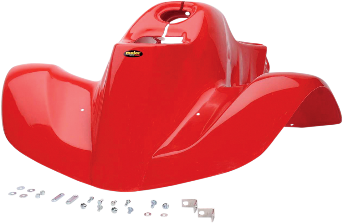 Front Fender - Red Fender Replacement Plastic Maier bodywork is made of tough, vacuum-formed, high-density polyethylene Uses stock hardware or provided hardware Drilling may be required in some applications Colors are OEM color matched